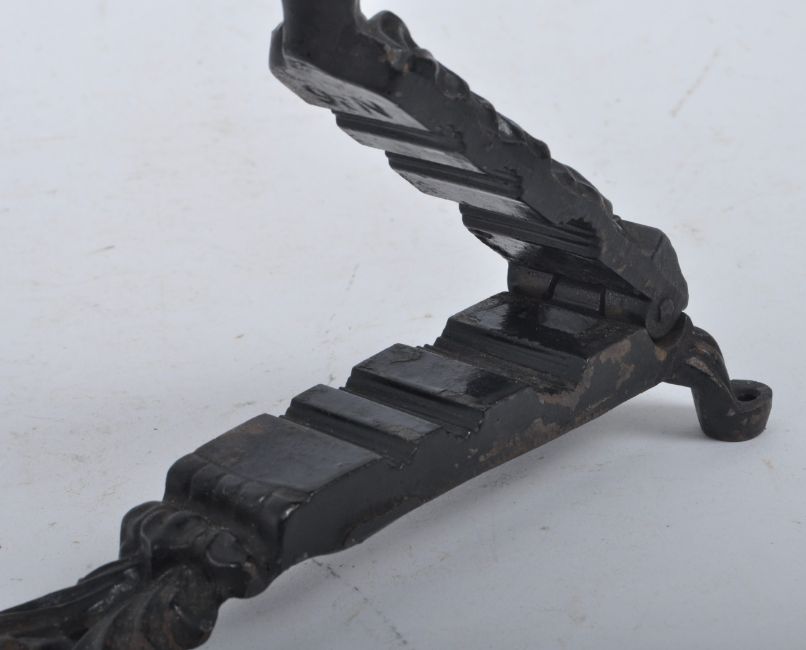 Breweriana interest - Kenrick & Son - An early 20th century cast iron cork compressor used in alcohol production to compress corks before bottling. Handled top with three sizes to compress the corks - also suited to repurposing as a nutcracker or doorknocker. With foliate and scroll design, mounted on four feet and with three drill holes to screw down. Measures approx. 25.5cm long.