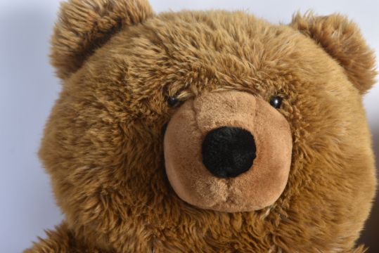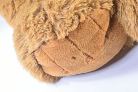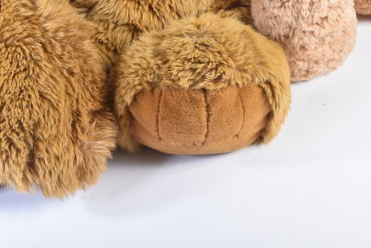 Two large soft toy teddy bears to include x1 Russ Berrie example with red scarf. Brown plush fur with the largest measuring approx 100cm.