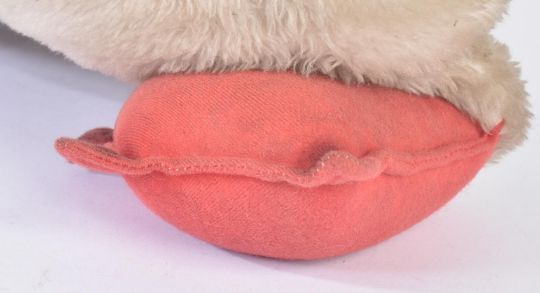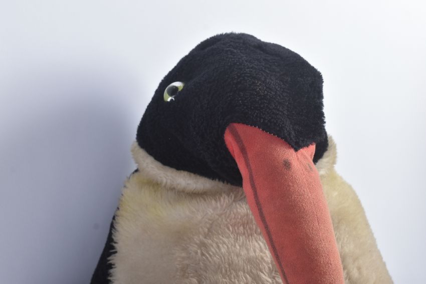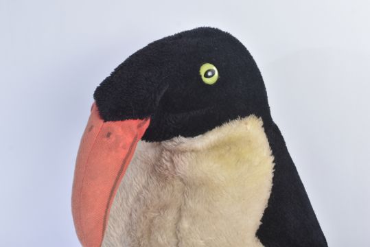 A large vintage 1960s / 1970s believed Hermann made soft toy teddy bear in the form of a Penguin. Black and white plush, firmly stuffed with red feet and beak. Measures approx 70cm.