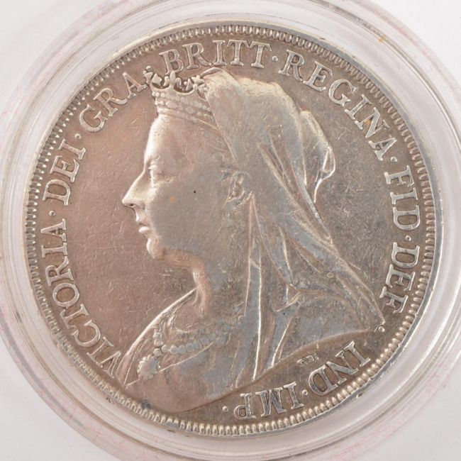 A 19th century Victorian 1896 silver crown coin. The coin to depict St George on horseback to reverse and veil head Queen Victoria to obverse with legend to surround. Weight approx 28g.