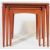 A retro 20th Century 1970s teak wood graduating nest of tables of Danish influence. Each nesting table raised on quadrille style shaped supports united by stretchers. Measures approx 51 x 53 x 38cm.