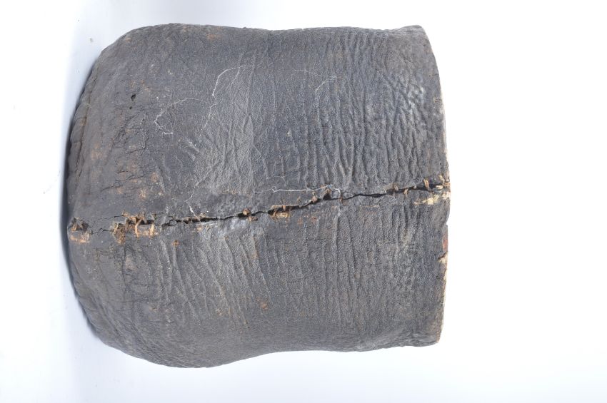 A late Victorian 19th century elephant foot stick stand / umbrella stand. The elephant foot with lined interior and a brass banded collar. Measures approx. 34cm x 30cm.