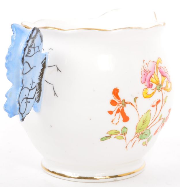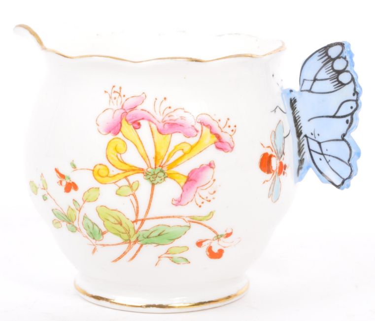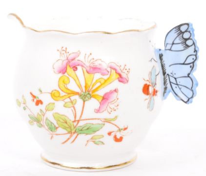 A collection of early 20th century and later English ceramics to include an early Foley (Wileman) Faience hand painted china vase by Shelley, Royal Albert bone china butterfly handled milk jug and a Royal Stafford tea cup and saucer. Largest measures 14.5cm (height).