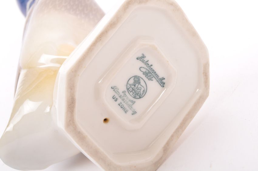 A late 20th century porcelain ceramic free standing wild duck by Hutschenreuther, Germany. Marked to base with lion stamp and manufacturers name to base. Measures 18cm (height).