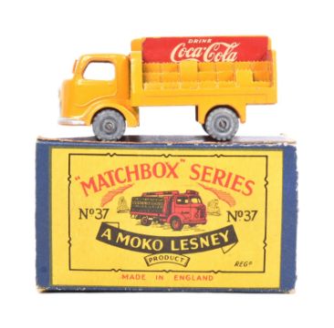 Moko Lesney - a vintage Moko Lesney made Matchbox Series diecast model No. 37 Karrier Bantam Lorry with Coke Cola load. Appears CG with original Coke Cola advertising decals and original box, lacking one flap.
