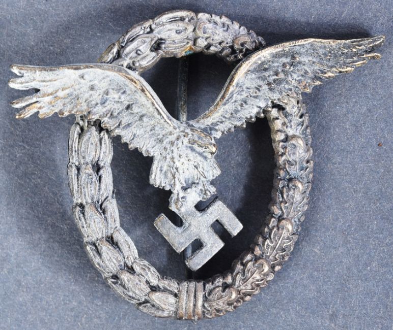 A WWII Second World War Third Reich Nazi German Luftwaffe Pilots badge and prize shield. The badge depicting an Eagle in flight clutching a Swastika surrounded by a laurel wreath. The shield translating ' Location Sailing Races '.