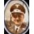 A WWII Second World War Third Reich Nazi German Army Officers framed portrait. Coloured print of an officer in uniform framed within an oval centre and a moulded floral border. Measures approx 3x4cm.