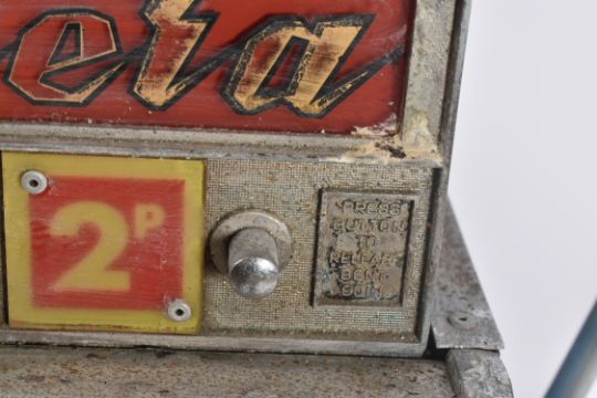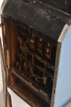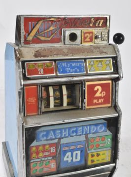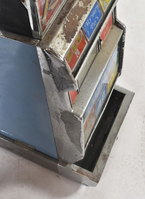 Jubilee Riviera - A retro 20th century one armed bandit fruit / slot machine. The games machine having a chrome case with glass panels. Measures approx. 73cm x 48cm x 48cm.