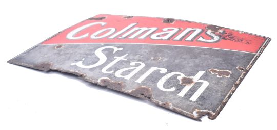 A vintage mid 20th century Coleman's Starch enamel advertisement shop sign. The sign on a black & red ground/ Measures approx. 41 x 61cm.