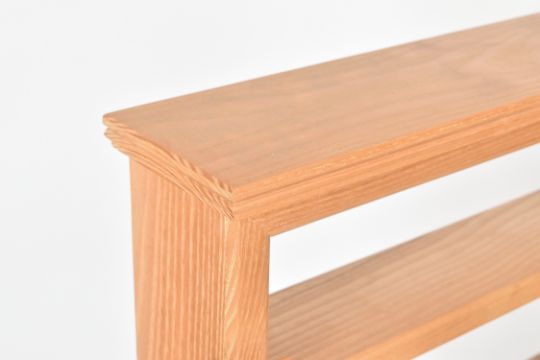 A mid 20th century bespoke made light oak bookcase / hanging shelves. Single upright form with a series of fixed shelves. Measures approx. 127cm x 73cm x 13cm.