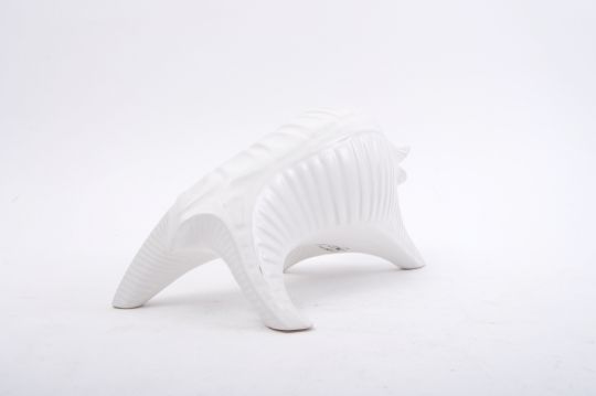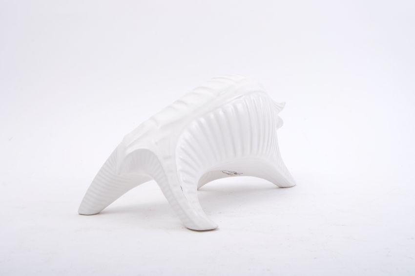 Jonathan Adler - a vintage late 20th century decorative ridged white ceramic bull. Signed in marker 'J. T. Adler xox' to base. Measures approx. 16cm x 30cm.