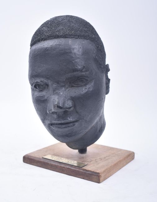 A contemporary hand sculptured bust of Martin Luther King. The bust with moulded facial features raised on a wooden plinth base with brass plaque. Measures approx. 30cm x 20cm x 20cm.