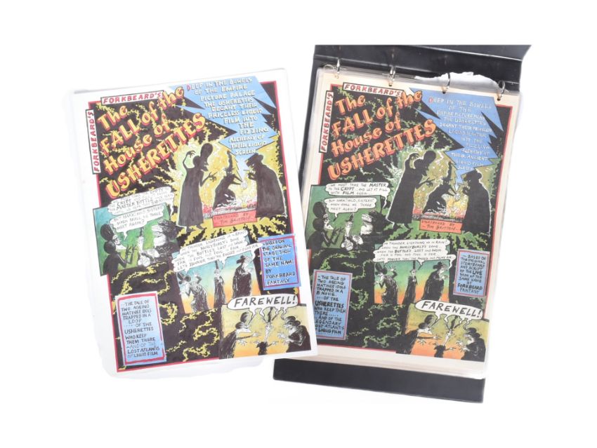 Forkbeard Fantasy - The Fall of the House of Usherettes – an original presentation edition of the Forkbeard-produced comic book based on the stage show of the same name. Each leaf laminated and presented in folder. Used for exhibitions. Along with one in original comic book format.