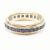 A vintage yellow metal and sapphire eternity ring. The band ring having a continuous row of square cut sapphires to an inverted scalloped border. Unmarked, surface tests indicate 9ct gold. Total weight approx 3.2g. Approx size M.