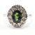 A white gold diamond and tourmaline halo ring. The ring set with an oval cut green tourmaline framed by illusion set round brilliant cut diamonds. Hallmark worn surface tests indicate gold. Weight 3.8g. Size O.5. All weights, measurements and sizes are approximate.