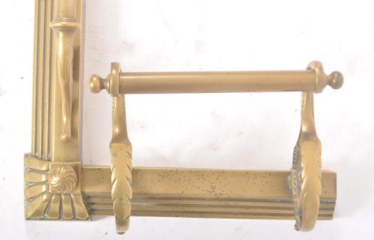 A Victorian 19th century brass fire fender kerb. The fender having scrolled dog ends to each side with central bar completed by central cup shaped finials. Reeded base throughout. Measures approx. 21 x 135 x 41cm.
