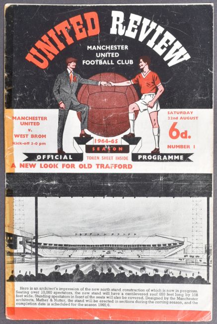 Football - Manchester United 1964/65 Team - vintage autographed team 8x10" black and white photograph. Signed by twelve of those pictured, including: George Best, David Herd, Noel Cantwell, and others. Some fading to ink. Supplied with the programme from 22nd August 1964 Manchester United V West Brom - where the autographs were obtained.