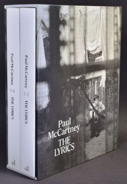 A hardback, two volume boxed set of 'The Lyrics: 1956 to the Present' by Paul McCartney, 2021. The book is an autobiography of Paul McCartney's life through the songs he wrote, from A to Z, recounting his career in The Beatles, Wings and his solo work. Measuring approximately 27cm x 21.5cm x 8cm.