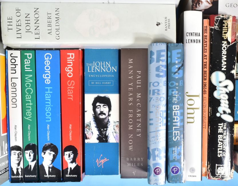 The Beatles - a large collection of books relating to the life and works of 'The Beatles' To include: 'The John Lennon Letters' edited by Hunter Davies, 'The Beatles: Unseen Archives' compiled by Tim Hill and Marie Clayton, 'John' by Cynthia Lennon and others. Including both hardback and paperback covers.