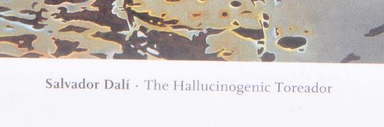 A contemporary 20th Century framed and glazed art print titled 'Hallucinogenic Toreador' by Salvador Dali. Measures 42cm x 51cm.