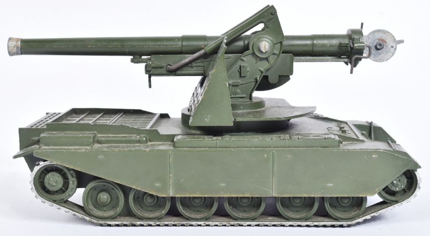 Diecast - an original vintage Britains made diecast model No. 2175 Self Propelled 155mm Gun. The model appearing complete, with original box but untested.