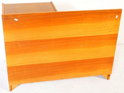 Remploy Furniture - A mid century  teak wood hall telephone table. The settle with raised superstructure comprising a raised frieze drawer and fabric Regency upholstered pad seat. Finished with a pair of sliding cupboard doors enclosing appointed interior with inset plinth base below. Measures approx. 71cm x 91cm x 41cm.
