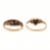 Two vintage hallmarked 9ct yellow gold gem set rings. The dome gypsy style ring having three round cut star set sapphires on a tapered shank, hallmarked for Birmingham 1986, sponsors for JCMJ - J C (Midland) Jewellers. The signet ring having a heart cut cabochon panel of onyx to etched shoulders and a tapering shank, London 1985, A&AJ. Total weight approx 2.5g. Approx sizes J.5 and M. Largest head measures approx 0.7cm.