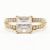 A hallmarked 14ct yellow gold and cubic zirconia ring. The ring having a prong set square cut white CZ to split shoulders set with further accent CZs to tapered shank. Hallmarked for Birmingham 2007. Total weight approx 3.2g. Approx size P. Head measures approx 0.8cm.