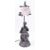 A vintage late 20th century bronze effect lamp in a neo classical style. The lamp with a frosted floral shape mounted on copper coloured chrome arm with oak leaves. The base featuring an Edwardian style lady sat reading a book. Atop a circular base lined with baize. Measures approx. 57cm tall.