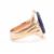 An antique yellow metal and sodalite signet ring. The ring having an oval cabochon of blue stone to gadrooned shoulders and tapering shank. Unmarked, tests indicate 9ct gold. Total weight approx 6.5g. Approx size J. Head measures approx 17mm.
