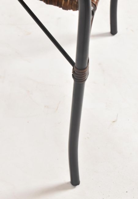 A contemporary designer Shaker style metal and rattan armchair. The chair having a faux bamboo and metal frame with rattan seat rest. All raised on slender supports. Measures approx. 87cm x 52cm x 42cm.