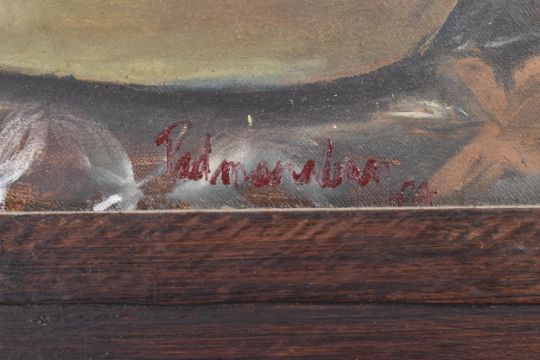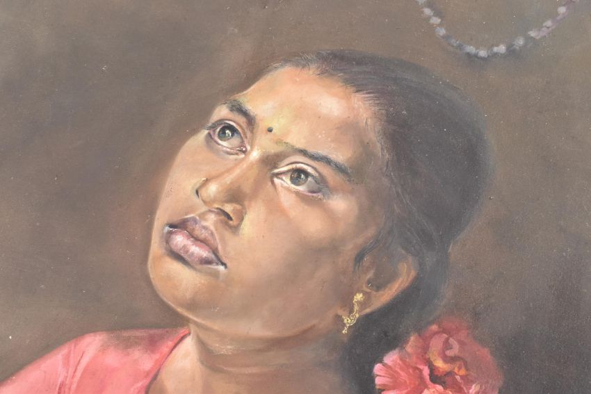 Paday Anan - A vintage 20th century 1920s oil on canvas painting. The painting depicting an Indian lady seated at table with ornaments resting atop. Signed to the lower right and dated. Set within an oak frame. Measures approx. 99cm x 78cm.