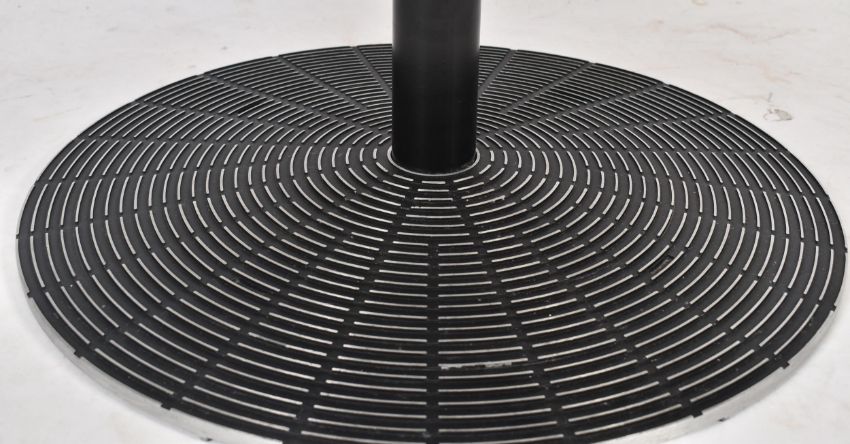 Tecno Milano - A retro mid 20th century Italian high end designer coffee occasional low table. The table having oak circular top supported by single black metal stem. All being raised upon a decorative textured circular base. Original label present. Measures approx. 40cm tall x 70cm in diameter.