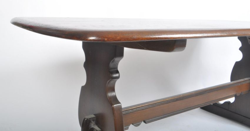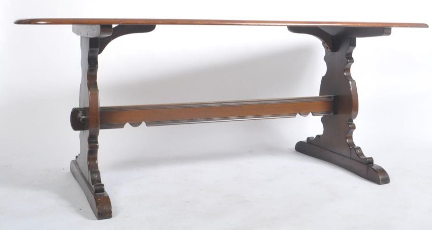 Lucian Ercolani for Ercol Furniture - A 20th century beech and elm refectory dining table. The dining table having an elm top with chamfered edges. Raised on square column graduating end supports with splayed feet. Measures approx. 72cm x 178cm x 81cm.