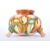 A Chinese after Tang Dynasty Sancai ceramic tripod censer. The censer in yellow, brown & green colourways. With shield shaped decorations and raised on tripod paw feet supports. Some crazing to the glaze & kiln damage to base. Measures approx. 8cm tall x 11cm in diameter.