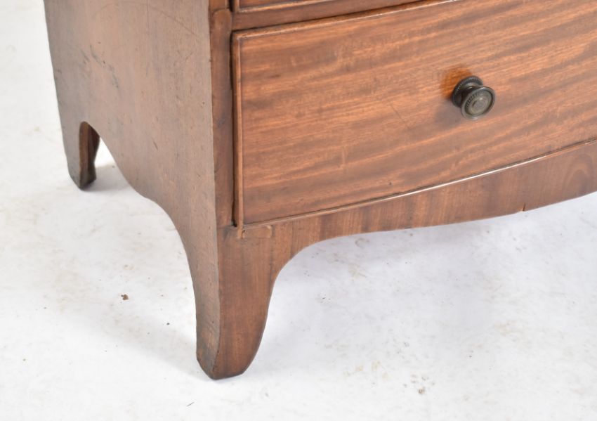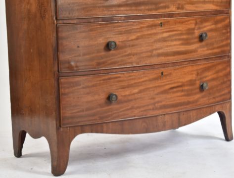 A George III 19th century mahogany bow fronted chest of drawers. The chest having a straight top over a bank of two over three drawers with pull handles. Measures approx. 184cm x 105cm x 53cm.