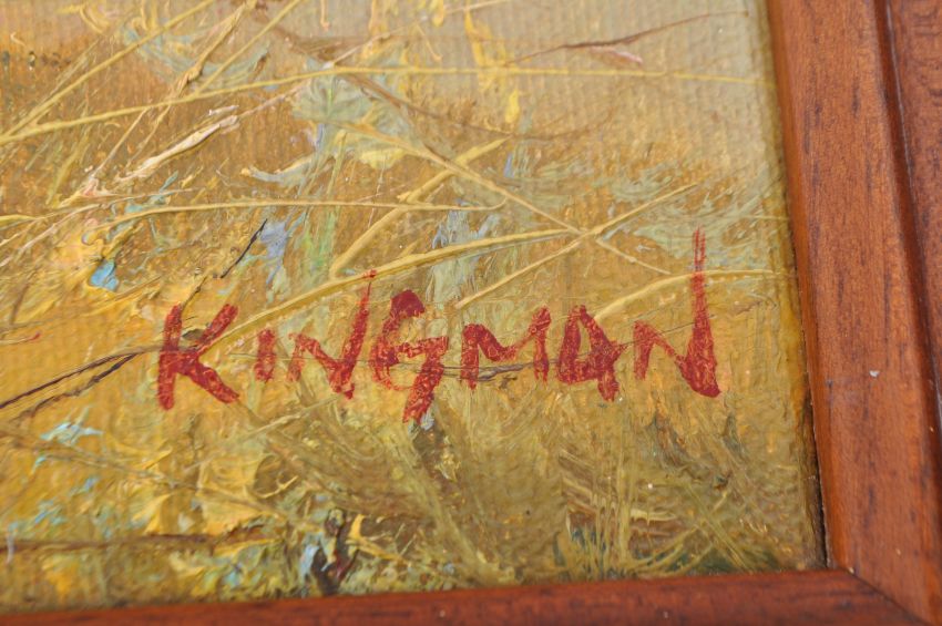 Hunting interest - A 19th century oil on canvas by Eugene Kingman (1909-1975). A Gun-dog, pointer raising game-birds, partridge among woodland / grassland setting. Signed to bottom right. Measures 30cm x 25cm.