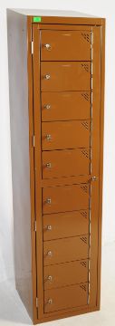 A contemporary Sperrin SP upright metal pedestal locker cabinet. Industrial form with brown enamel painted finish to the metal body. Each door with key. Brown colourwayMeasures approx: 190x45x45cm