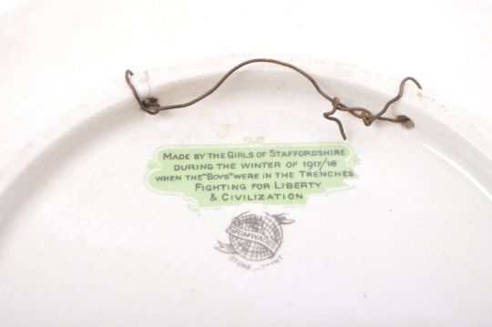 A pair of Grimwades Bruce Bairnsfather wall plates. Made by The Girls of Staffordshire During The Winter of 1917. To include Give It A Good `Ard `Un Bert You Can Generally `Ear `Em Fizzing A Bit First If They Are Again to Explode and 'When the ell is it goin to be strawberry'  Measures diameters 25.5cm