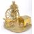 A vintage brass blacksmith's display mounted on a  brass plate base. Display depicts blacksmith standing beside a cart wheel, anvil and forge on a rounded base. Along with a ceramic horse and wooden cart. Display measures 17cm (height).