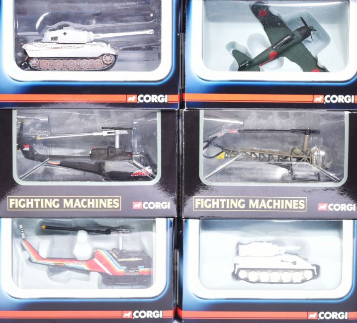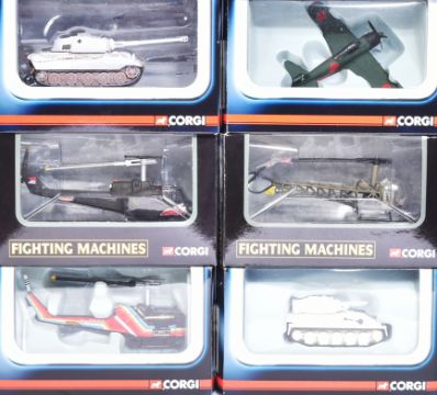 Diecast - a collection of Corgi diecast models of Military and Aviation diecast models to include; Fighting Machines modern era, WWI First World War Centenary, Years of Flight, Showcase and others. Mint and boxed.