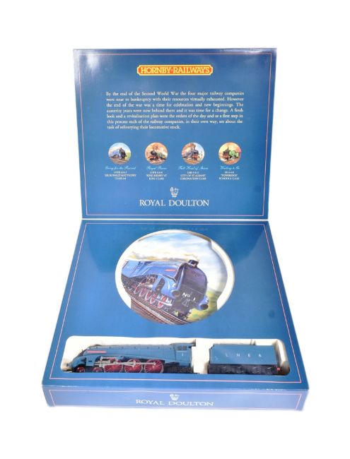 Model Railway - a Limited Edition Hornby Royal Doulton Collection OO gauge model railway trainset No. R649 Sir Ronald Matthews Locomotive ' Going for the Record collectors place. Contents appearing mint and unused.