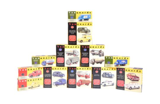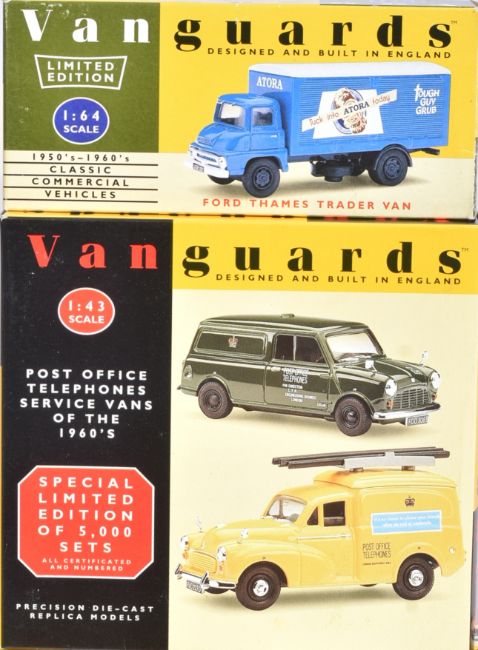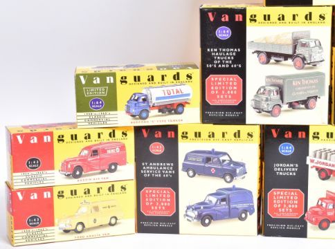 Diecast - a collection of x12 Lledo made Vanguards 1/43 and 1/64 scale diecast models to include; Ford Thames Trader Van, Bedford S Type Tanker,Austin A40 Van and others. Some multipacks included.