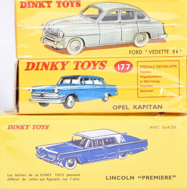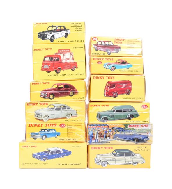 Diecast - a collection of x12 Atlas Edition reissue Dinky Toys diecast model cars to include; 159 Break ID 19 Citroen, 517P Renault R8 Police, 532 Lincoln Premiere and others. All factory sealed.