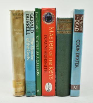 Colin Dexter, Brendan Behan, Gerald Durrell etc. - a collection of modern first editions in dust wrappers. The lot to include 1989 The Wench is Dead - Colin Dexter, publ. Macmillan, 1958 Borstal Boy - Brendan Behan, publ. Hutchinson (ex. libr.), 1978 The Garden of the Gods - Gerald Durrell, publ. Collins, 1978 Stately as a Galleon - Joyce Grenfell, publ. Macmillan, 1940 Fanny by Gaslight - Michael Sadleir, publ. Constable, and a 1996 signed first edition of Master of the Keys by Domini Highsmith. Six books in lot.