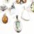 A selection of gem set necklace pendants. The pendants to include butterfly heart abalone, mother of pearl, CZ, opaline glass, tigers eye. Weight 45g. Butterfly measures 3.5cm. All weights, measurements and sizes are approximate