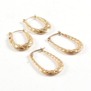 A hallmarked 9ct gold St Christopher pendant and two pairs of gold creole earrings marked 375. Weight Pendant 1.9g. Earrings 1.9g. Pendant 2.2cm inc bale. All weights, measurements and sizes are approximate