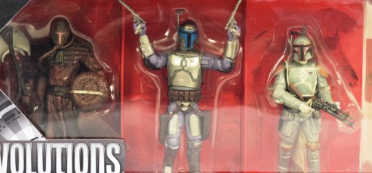Star Wars - Evolutions - 2008 Hasbro made Evolutions triple-pack action figure set ' The Fett Legacy ' featuring Mandalore, Jango Fett and Boba Fett. Factory sealed, contents mint and unopened. As new.