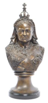A 19th century Victorian patinated bronze bust of Queen Victoria. The bust raised on a on marble base. Measures 42cm