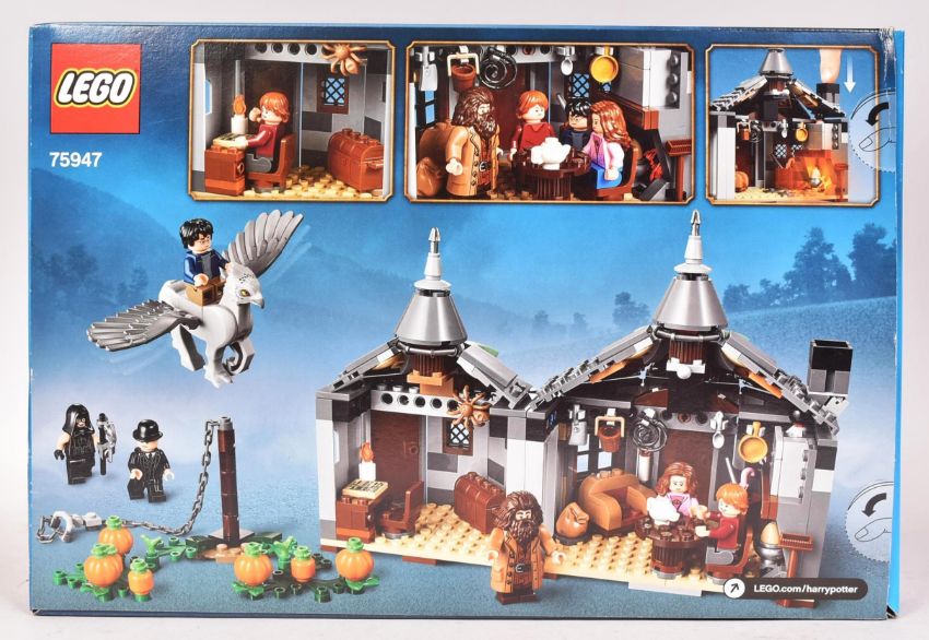 Lego - an original Lego Harry Potter set No. 75947 Hagrid's Hut: Buckbeak's Rescue. The set rebagged, with all minifigures, instructions and original box. The box open to one side only.